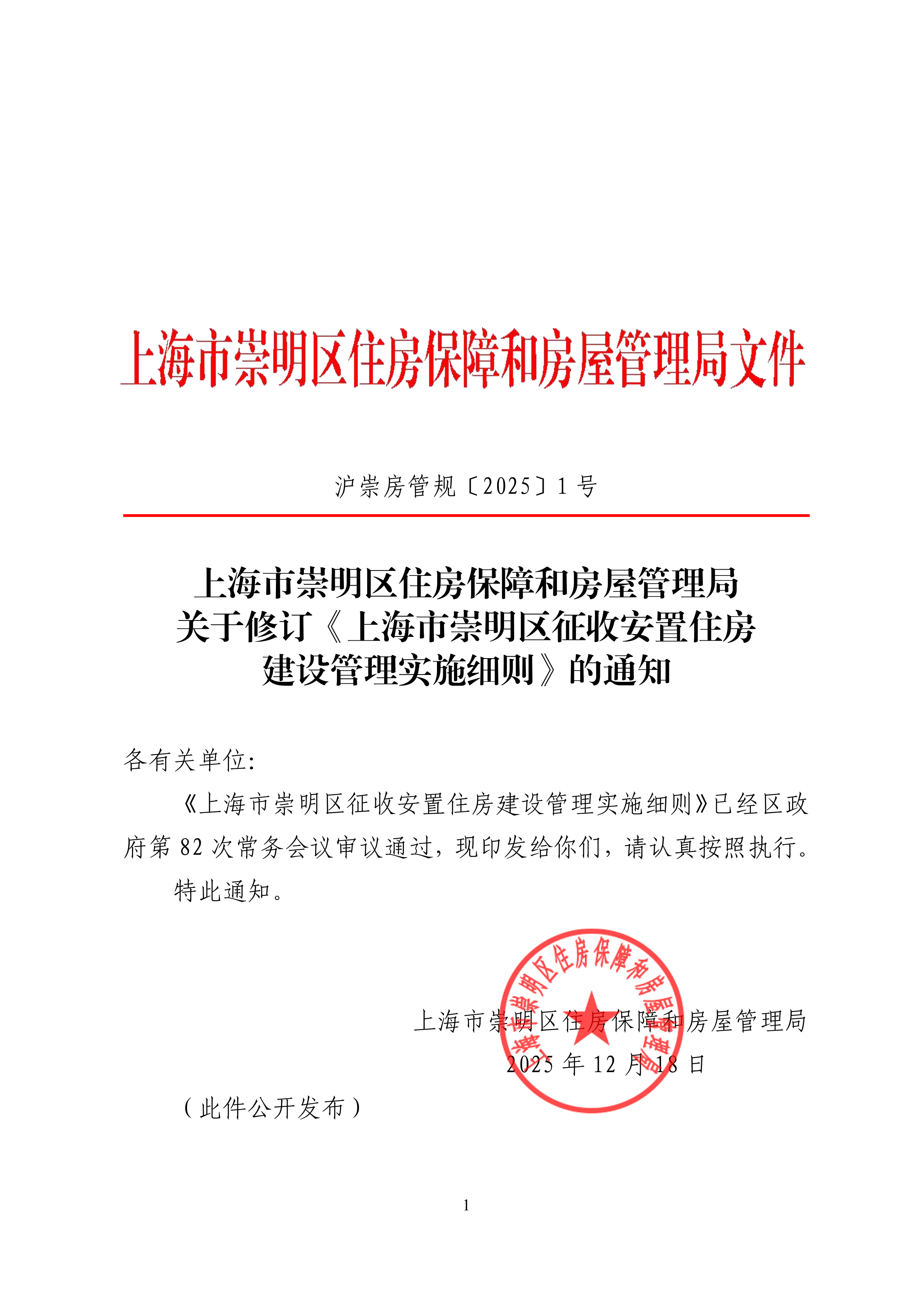 沪崇房管规〔2025〕1号