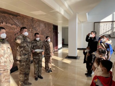 活动结束后,北闸村干部们带领留守儿童带上汤圆慰问武装部全体官兵。