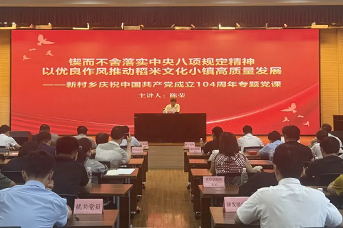 乡党委书记陈荣围绕《锲而不舍落实中央八项规定精神 以优良作风推动稻米文化小镇高质量发展》主题讲授专题党课,从“深刻理解中央八项规定的逻辑”“全面掌握中央八项规定的成效”“深入践行中央八项规定推动稻米文化小镇建设”三个方面系统阐释了锲而不舍落实中央八项规定精神的重大意义,并激励全乡党员在加强党性修养、践行群众路线、敢于担当作为中亮出好作风,展现更多担当、贡献更多作为。