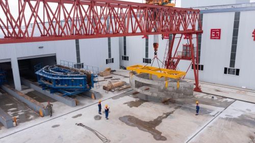 崇太长江隧道的重要构件管片和箱涵均为预制件,隧道现场进行施工的同时,这些预制件也正在加紧实现量产,以此来保障工期。