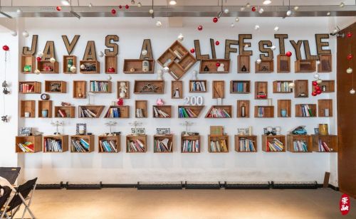 在生活艺术馆内随处溜达,每个区域都设置了“顶天立地”的书架,上面摆放着各类书籍,是空间内不可忽视的亮点。“梦麟书房”是艺术馆的别名,这里会不定期举办读书分享会、新书发布会等文化活动,充满了书香。