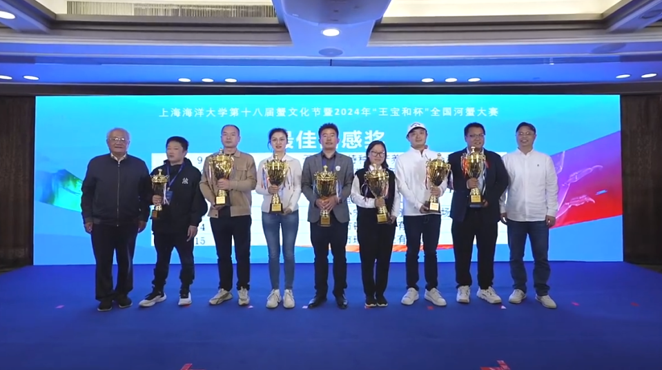 近日,上海海洋大学第十八届蟹文化节暨2024年“王宝和杯”全国河蟹大赛在上海王宝和大酒店成功举办。崇明清水蟹斩获“最佳种质奖”“最佳口感奖”“金蟹奖”等多个奖项。