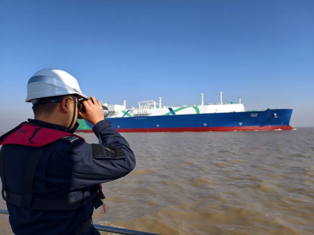 1月18日,在崇明海事局的精心维护下,2025年首艘新建LNG船舶“LIMAIL丽梅尔”轮从上海长兴岛安全离港交付。