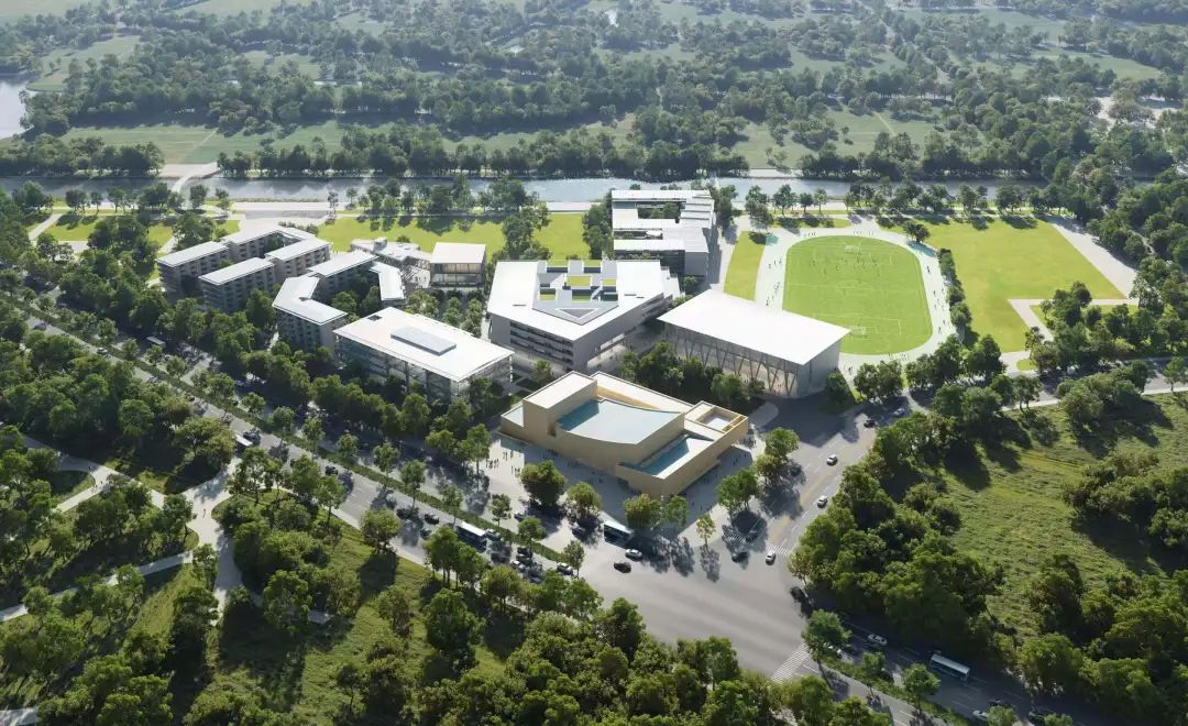 中华学院现代化新校区坐落于崇明区陈家镇高教园区,毗邻上海交通大学崇明校区、上海外国语大学贤达学院,以及在建的上海地铁22号线。校区由普利兹克奖得主阿尔瓦罗·西扎、安藤忠雄等6位国内外建筑大师联合设计,拥有国际化的实训基地、国际赛事标准的体育场、专业级别的千人大剧场等建筑,打造出集教育教学、社会实践、兴趣拓展于一体的开创型未来校园。