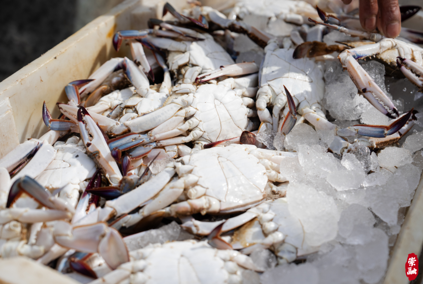 长兴横沙渔港码头蔡记海鲜负责人蔡克胜介绍:“目前梭子蟹大的(4两到7两)能占到一半左右。刚开捕这两天价格会稍高一点,像虾大概在40元一斤,品质好的梭子蟹每斤在20多元到30元之间。”