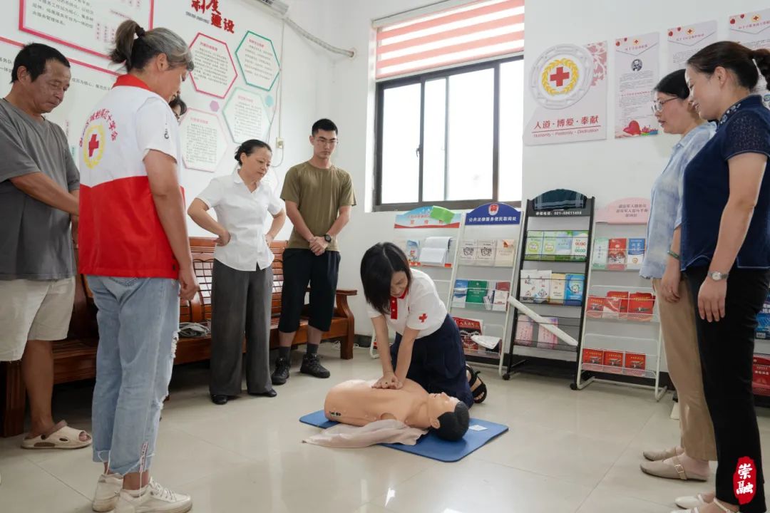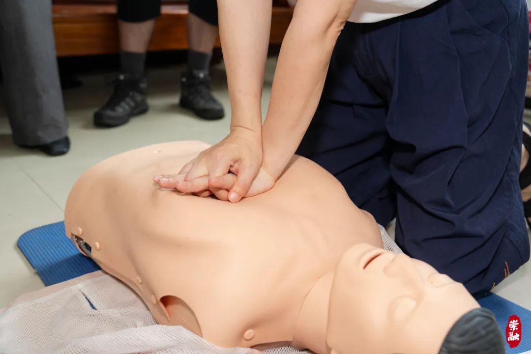 除了AED自动体外除颤器的使用教学外,区红十字会的救护人员还在小区内开展了心肺复苏培训,帮助居民掌握更全面的急救技能。