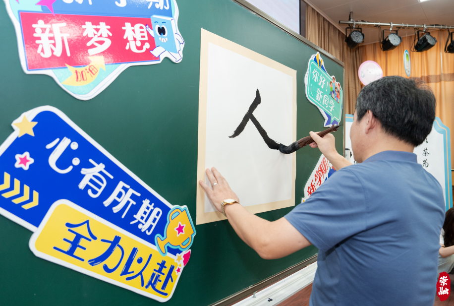 入学仪式上,校长为新生们送上了殷殷期盼与诚挚祝福。紧接着,一系列传统仪式逐一展开。学生代表在老师指导下端正衣冠、行拜师礼,表达对师者的敬重。在“开笔破蒙”环节,老师在挂起的宣纸上写下简单而意义深远的“人”字,寓意在人生的启蒙阶段,要学会堂堂正正做人。仪式结束后,孩子们来到教室,手持毛笔,蘸上墨水,一笔一划地勾勒出“人”字,完成了这堂有意义的“开学第一课”。
