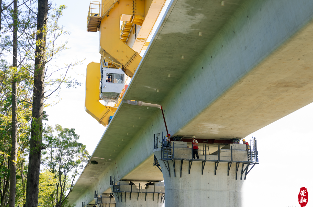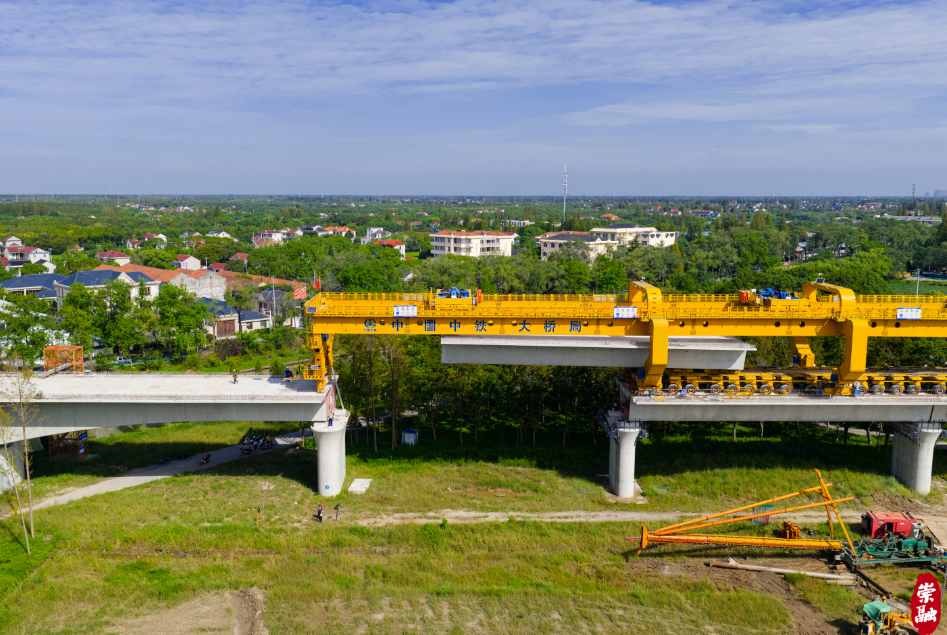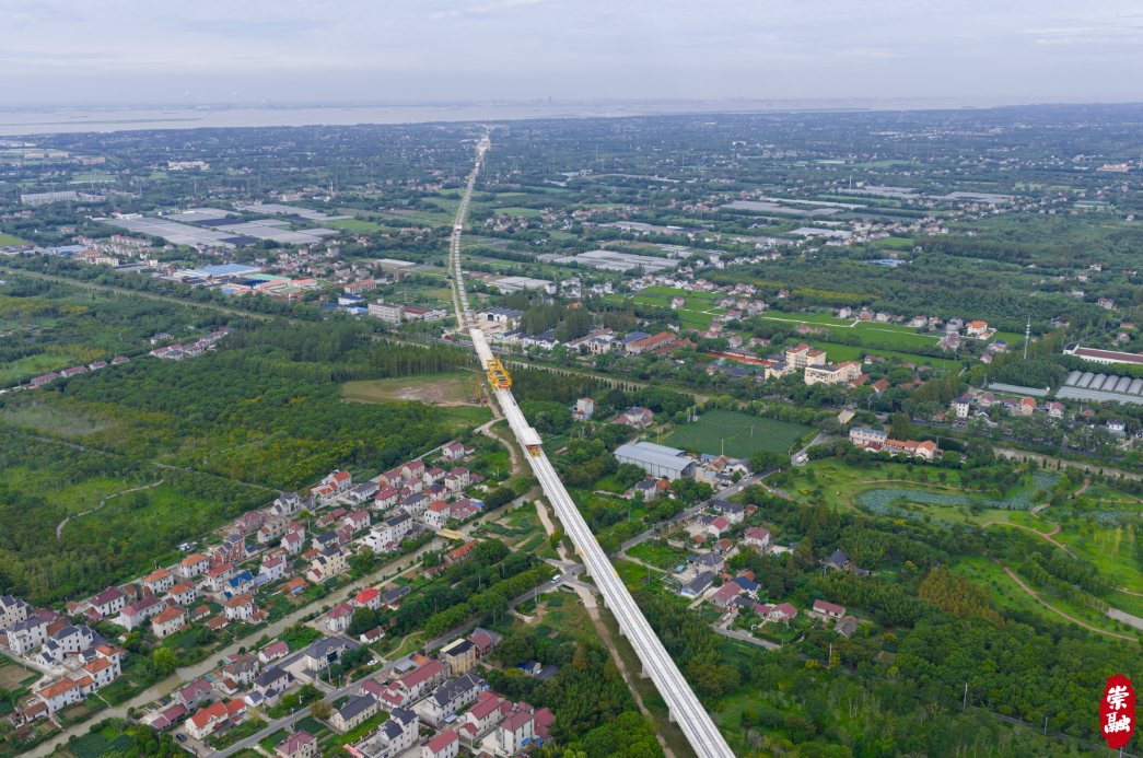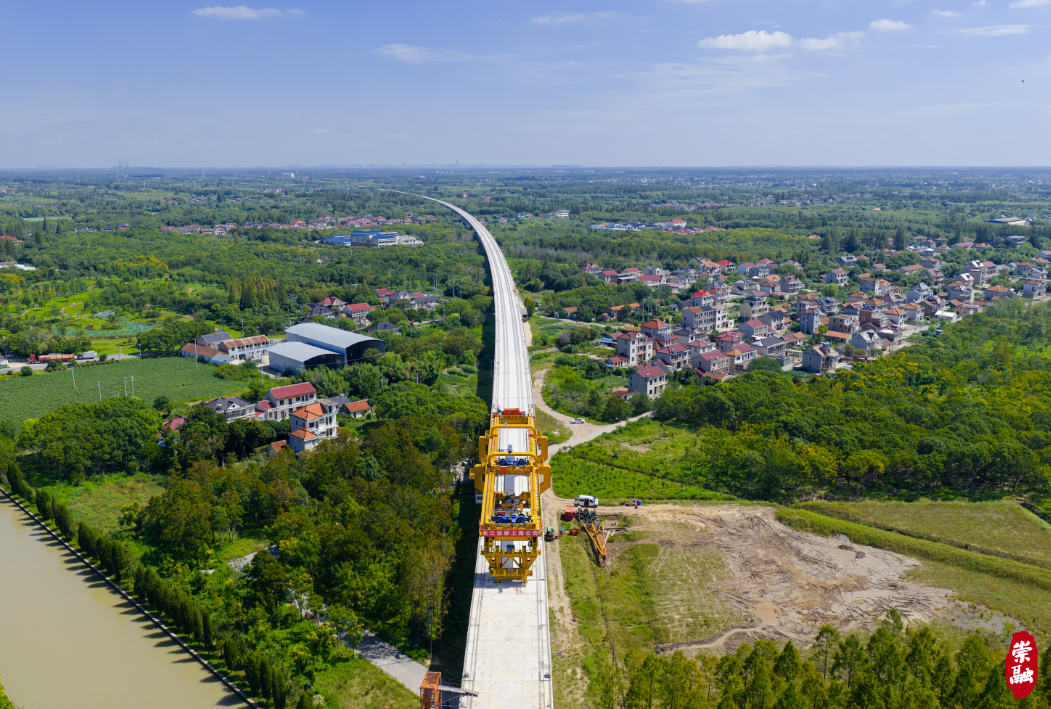 从高空俯瞰,崇明特大桥犹如一条长龙横卧在绿野中。据悉,全长19.07公里的崇明特大桥北连崇启公铁长江大桥,南接崇太长江隧道,一共由577榀预制箱梁、10座跨河跨路连续梁组成,其中,设有一座2台6线的崇明站。接下来,崇明特大桥将一路高歌猛进,朝着年底预设目标大步迈进。