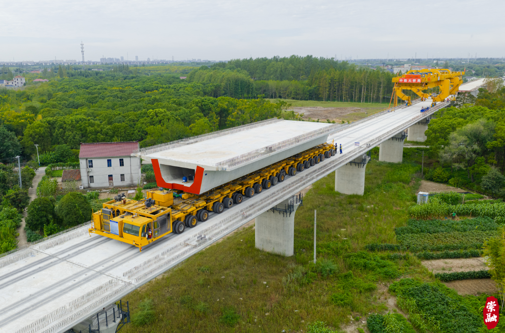 横跨崇明岛的沪渝蓉高铁崇明特大桥目前正处于预制箱梁架设阶段。截至9月11日上午,大桥上海方向预制箱梁架设正式突破5公里,标志着该项目桥面系施工进入加速推进阶段。