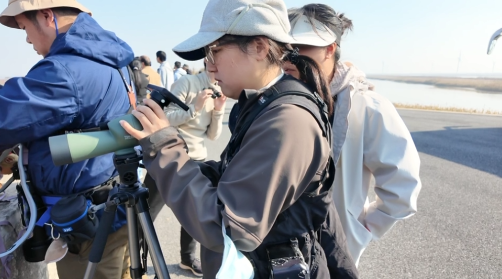 当天,不少爱好者特意从市区赶来,一睹过境候鸟风采。大家兴致盎然,架起“长枪短炮”,用镜头捕捉大自然的精灵。“今天真是不虚此行,崇明东滩的候鸟很多,拍了好多照片,特别漂亮!”观鸟爱好者陈先生表示。
