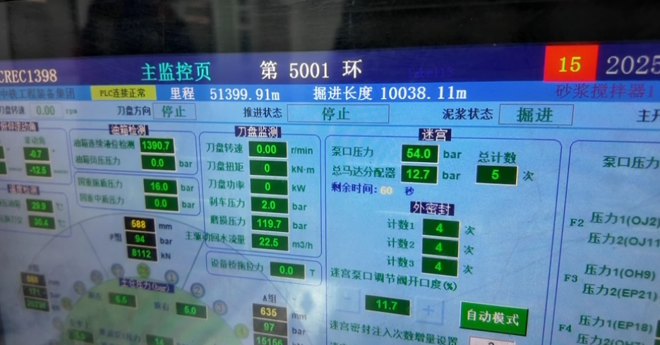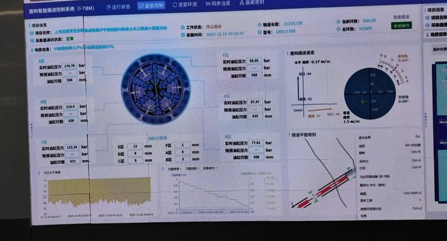 从2024年5月“领航号”盾构机正式始发,此次掘进里程突破万米是世界最大直径高铁盾构机首次实现一次连续掘进10000米,连续掘进里程之长、速度之快位居行业领先水平。该成就主要得益于“领航号”盾构机九大智能建造成果的成功应用,其搭载的世界最强脑系统拥有“独立思考、智能分析、自主判断”能力,掘进、环流、姿态参数较人工操作更平稳,成功实现全系统算法控制的无人化智能掘进的常态应用,创造了15米级高铁隧道月掘进718米世界纪录。