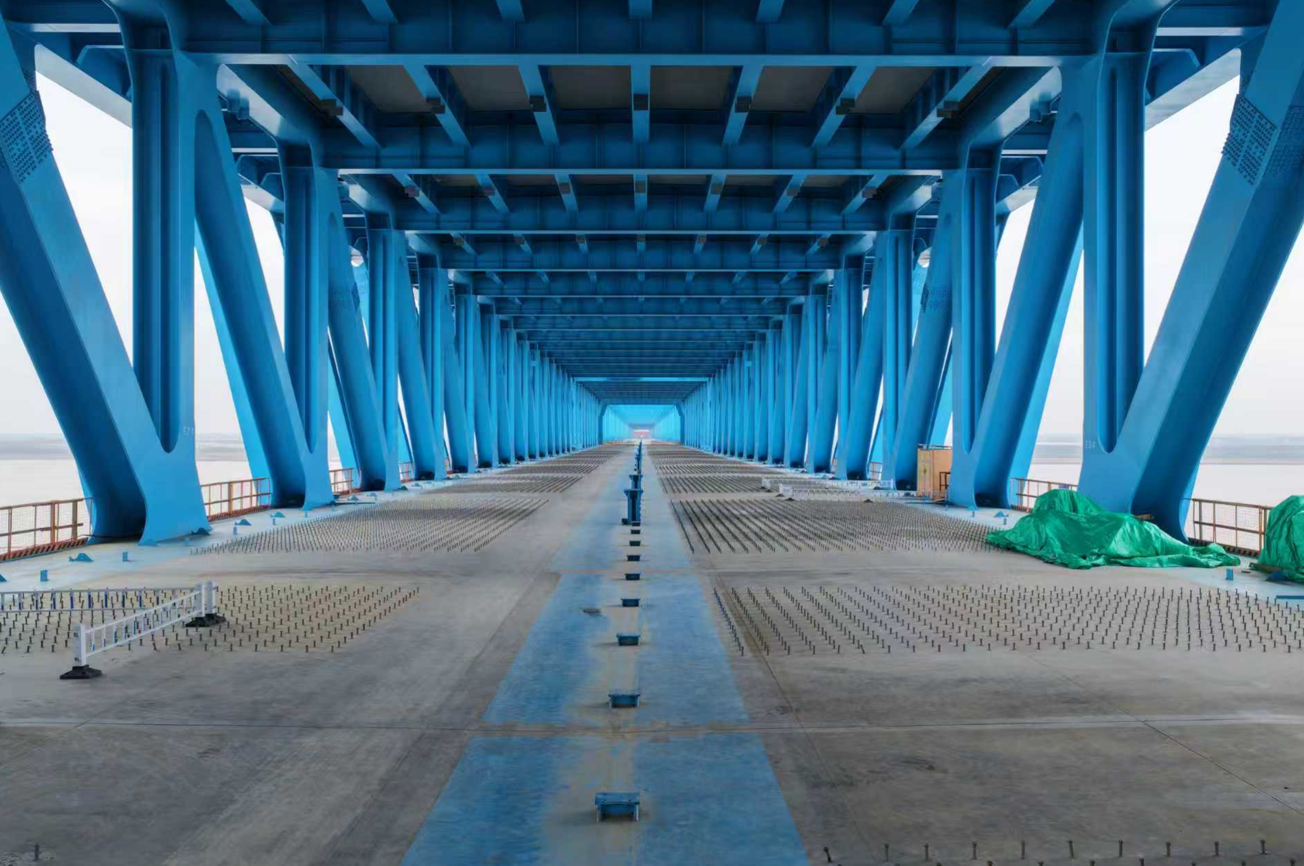而在大桥下层的铁路路面,钢结构涂装作业也正在有序开展。现场负责人介绍,距离崇启两端相连还剩下5个钢截断吊装,吊装逐一完成后,上下两层路面施工、大桥斜拉索安装等工作将会有序铺开。“目前南北两岸的间距约100米,预计5月能合龙。”