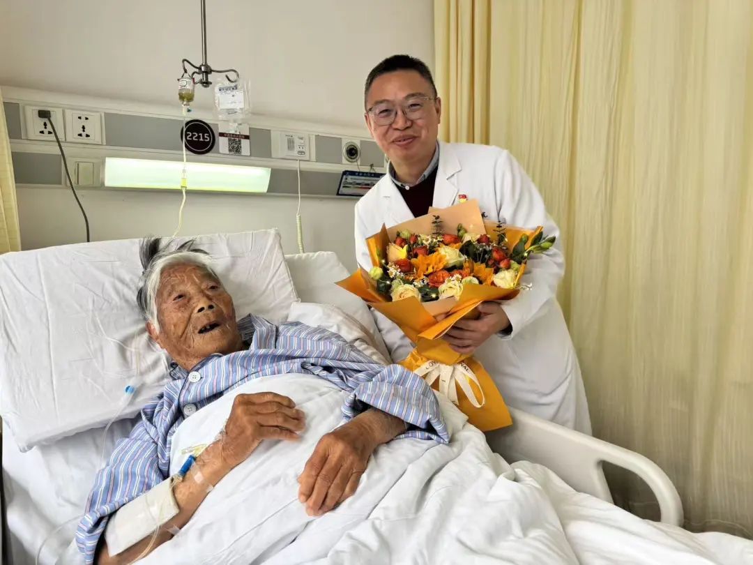 正值初春,病房的窗外,玉兰树已悄然结出花苞。当生日蛋糕的甜香弥漫病房,顾淡忠老人颤微微地将第一块蛋糕递给龚韶华医护团队。这个瞬间,监护仪的数据屏与生日蜡烛的暖光交相辉映,照亮了医患同心书写的生命奇迹。正如龚韶华镌刻在心中的那句话:医学的温度,在于让每个生命都能带着尊严继续前行。