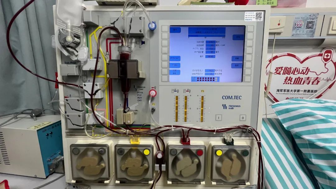 记者走进采集室,看到芦丹正半躺在病床上,脸上洋溢着轻松的笑容,与身旁陪护的丈夫施玲龙有说有笑。病床边,血液分离机正有条不紊地自动运转,从芦丹的静脉血中精准采集造血干细胞,同时将其他血液成分安全地输回她的体内。“捐献过程很简单,我也没有任何不适感。”芦丹说。