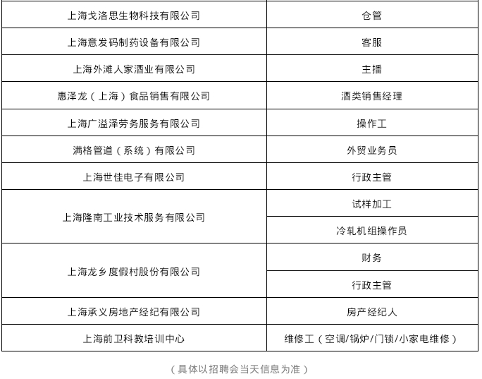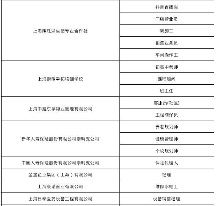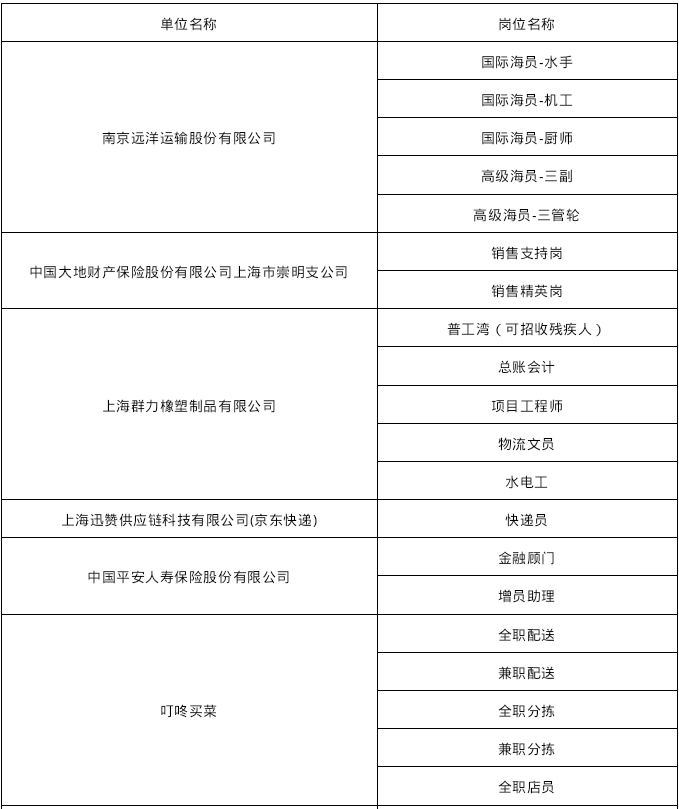 本周五,崇明区退役军人暨随军家属专场招聘会来了