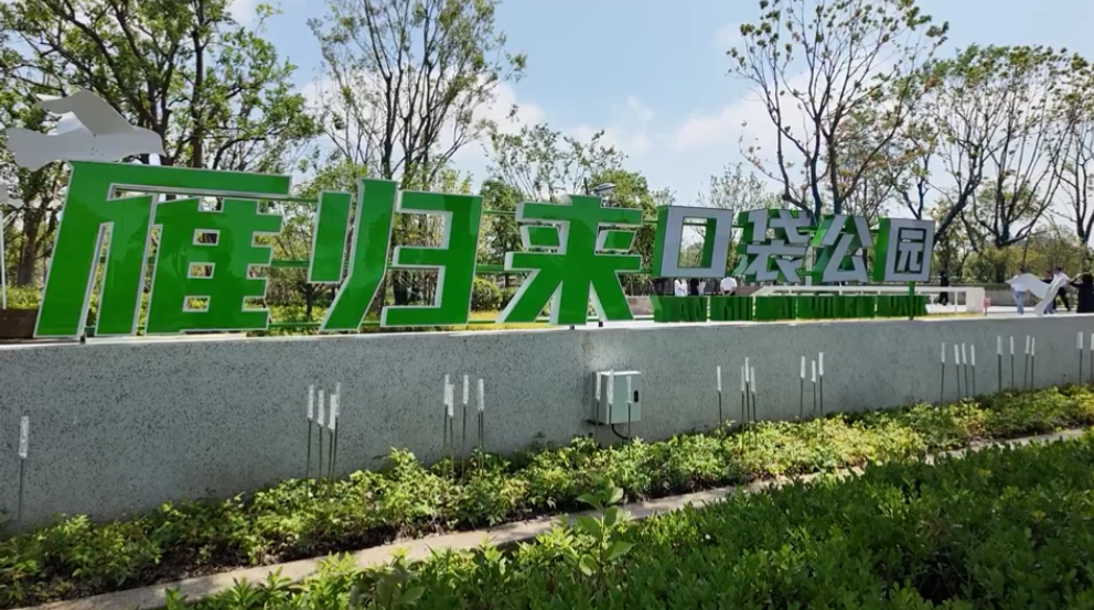 “雁归来”口袋公园内多处布设候鸟造型点缀,融合陈家镇候鸟文化、生态文化以及乡愁文化。此外,公园还注重夜景灯光布置,夜幕之下,各类灯光亮起,与白天相比,又是另一番景致。公园如今已经正式开放,感兴趣的市民不妨前往观赏体验。