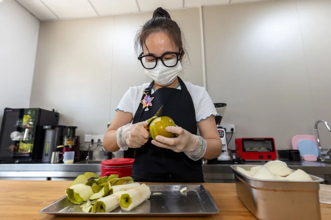 这款饮品的诞生,源于蔡海燕对家乡味道的执念。2016年,她的父亲回到家乡,在这片土地上开办了合作社,主要种植翠冠梨和黄桃。而那时的蔡海燕,还在市区为生活奔波,随着年纪渐长,都市的喧嚣让她愈发思念家乡的宁静与温情。今年,她下定决心回到故土,在父亲的合作社旁开起了这家咖啡店,将父亲种出的翠冠梨、黄桃等农产品融入咖啡,反复尝试榨汁、果肉等不同形态的搭配,制作出多种口感的饮品。