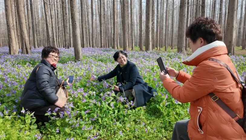 春日暖阳洒下,紫色的花瓣闪烁着柔和的光泽,没有浓郁的香气,唯有淡淡的芬芳萦绕鼻尖。不少游客结伴出行,在花丛中拍照打卡,定格这份春日美好。“天气特别好,二月兰也开了,心情舒畅,崇明很美。”一位游客感叹道。另一位与好友同游的女士也表示:“正好是二月兰开放的时节,约上姐妹来玩,特别开心。”
