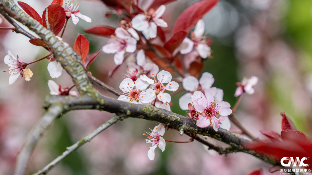 粉白红叶李缀满枝头,