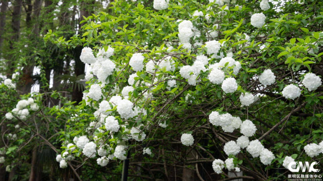 洁白木绣球如云似雪,